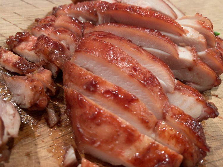 Char siu (chāsīu, 叉燒) on kantonilaista hieman barbeque-tyyppisesti grillattua porsasta. Char siun salaisuus on marinadissa, joka on suolainen, makea ja ylipäätään syvän makuinen. Vaikka nimi viittaakin alunperin juuri porsaaseen, voi samaa marinadia mielestäni käyttää muuhunkin.