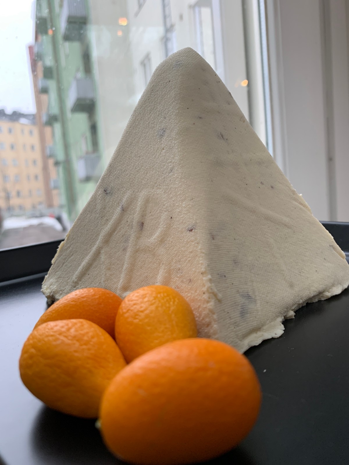 Vuoraa pashamuotti liinalla ja kaada massa muottiin. Laita muotti johonkin astiaan, johon liinan läpi valuvat nesteet kerääntyvät. Anna asettua kuutisen tuntia tai yön yli.