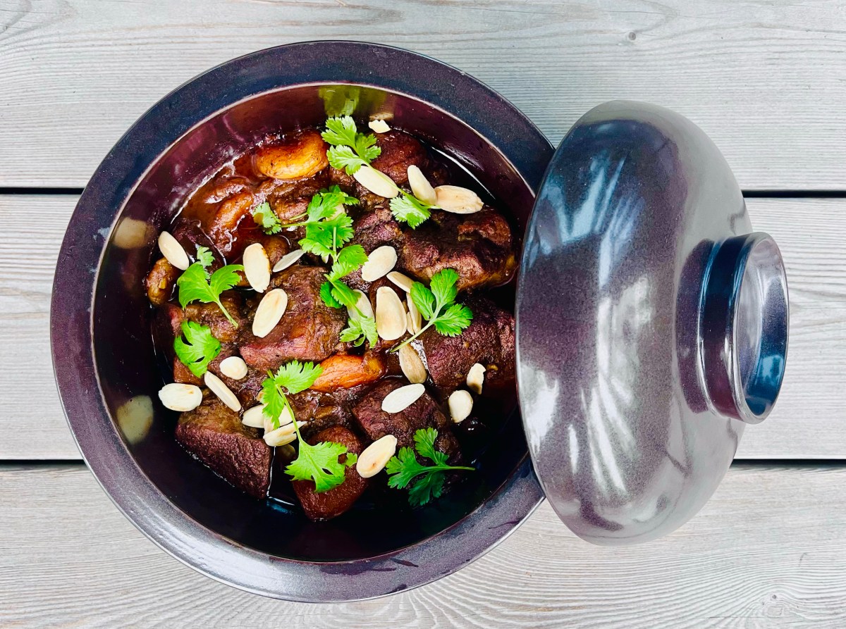 Tagine maustetaan ras el hanout-mausteseoksella, jonka voi tehdä itse tai käyttää kaupan seoksia. Toisena erityispiirteenä on kuivatut hedelmät, joilla pataan saadaan mukavasti makeutta. Tagine tarjoillaan tyypillisesti couscousin kanssa.