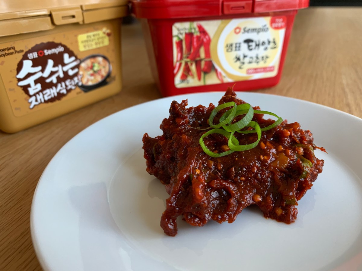 Gochujangin ja doenjangin välistä suhdetta voi muokata oman maun mukaan. Doenjang on hieman opittu maku, joten kannattanee aloittaa pienemmällä suhteella kuin 1:1.