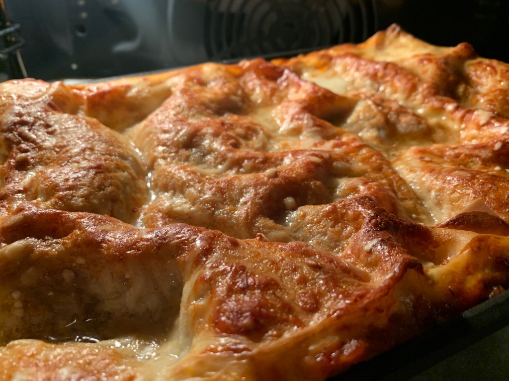 Tämä määrä täyttää noin 40cm kertaa 20cm -kokoisen uunivuoan. Lasagne paistuu uunissa 175 asteessa noin 45 minuutista tuntiin.