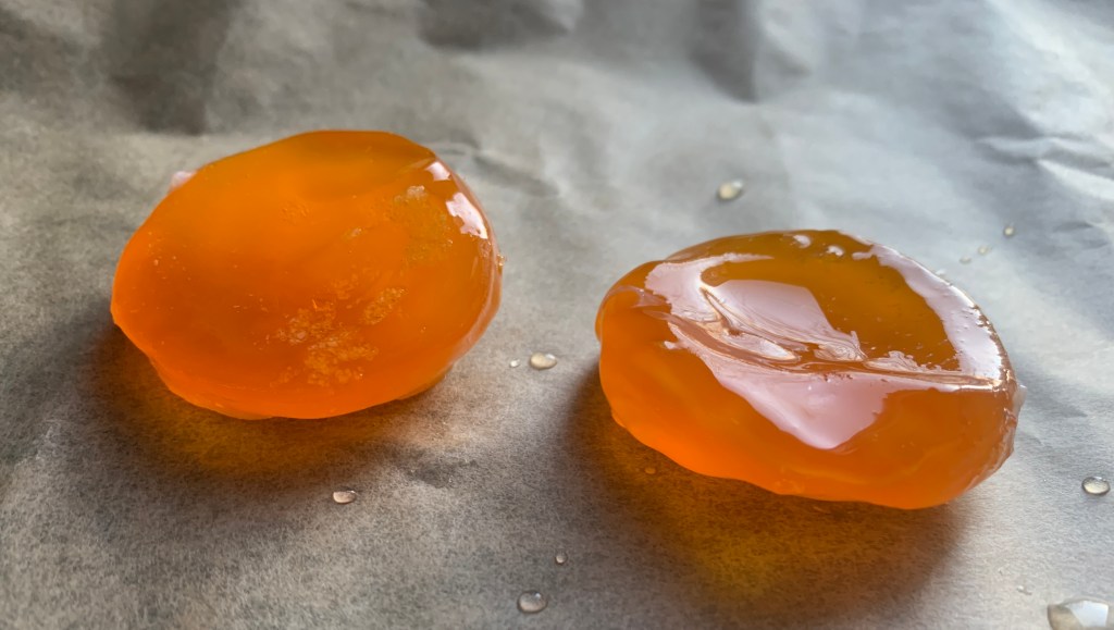Säädä uuni kiertoilmalle 55-60 asteeseen. Kuivaa keltuaisia 3-4 tuntia, kunnes keltuaisten rakenne on jämäkkä. Keltuainen jämähtää kylmetessään vielä lisää. Anna keltuaisen kylmetä ennen käyttöä.