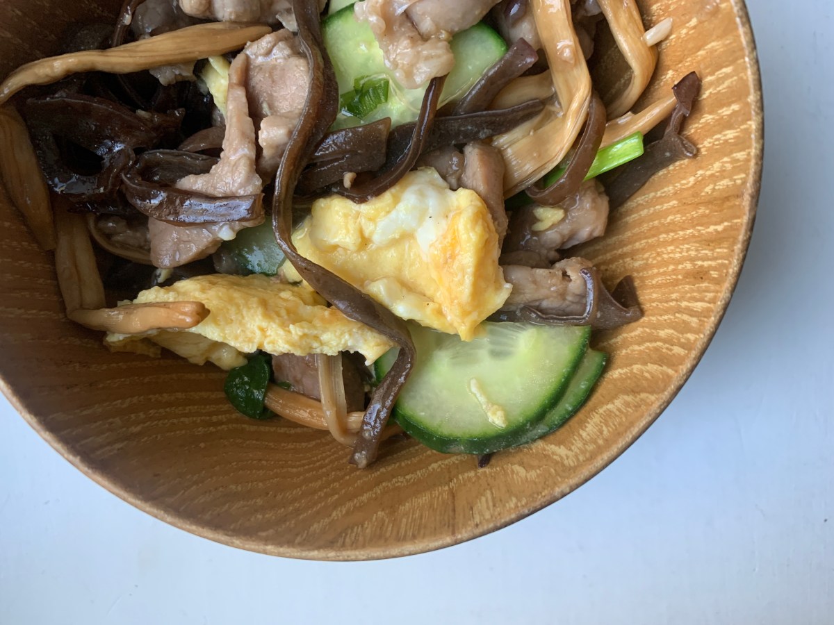 Mu shu porsas (mù xū ròu, 木须肉) amerikankiinalaisen keittiön perusannos. Tässä kuitenkin vähän kiinalaisempi versio! Aito mu shu porsas koostuu porsaasta, tietyistä vihanneksista ja munasta. Vihanneksina aidoimmat ovat kurkku, juudaksenkorvasienet ja päivänliljan kukat.