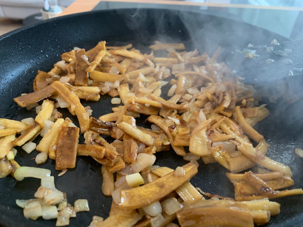 Tee patongista sentin viipaleita ja sivele niiden pintaan hieman oliiviöljyä. Paahda viipaleet uunissa 200 asteessa hieman ruskeiksi.