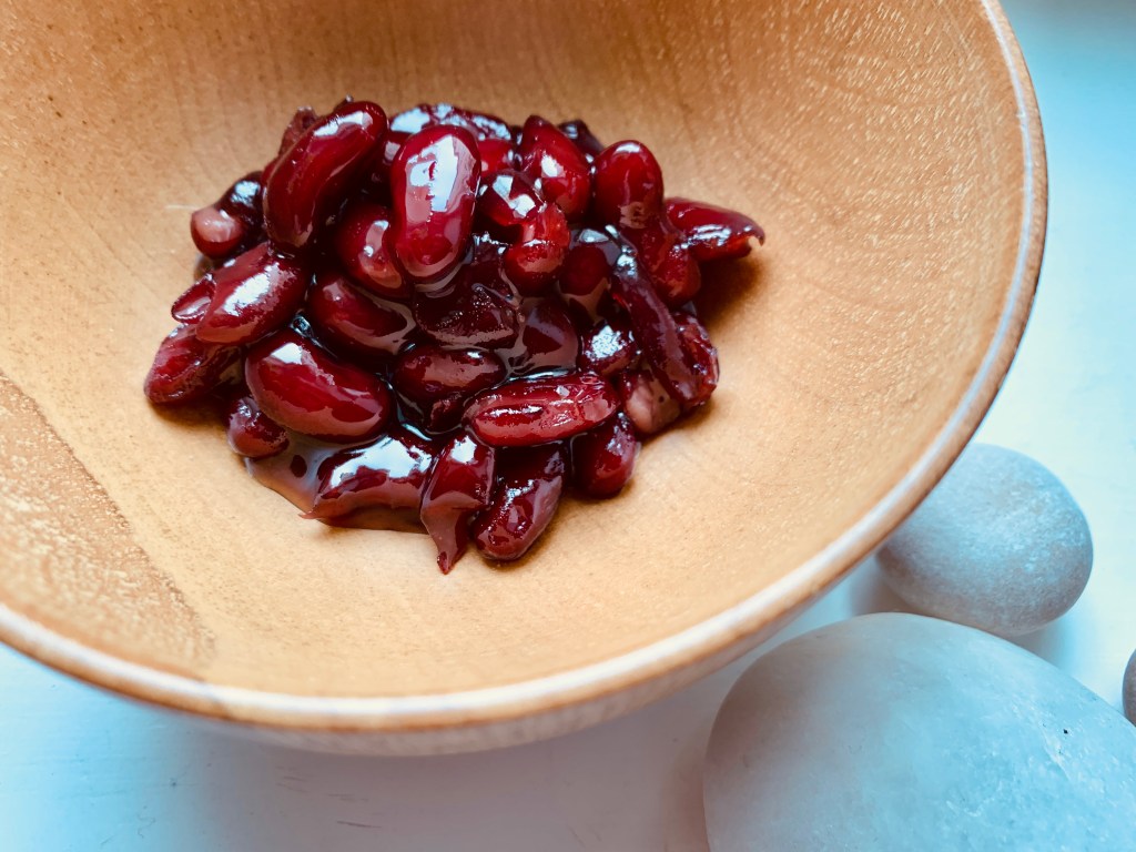 Lopuksi voit päättää hillon koostumuksen. Suoraan kattilasta saat tsubuania. Jos murskaat papuja hieman, valmistuu tsubushian. Murskaamalla ja painelemalla lusikalla seos siivilän läpi saat koshiania.