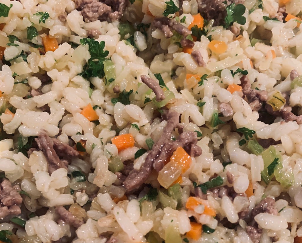 Hyvä tapa aiemmin kuvaamani arancini-riisipallojen lisäksi risotonjämien hyötykäyttöön on tehdä niistä lihapasteija, tai pasteijan tyyppinen piirakka. Jos tekee neljän hengen risoton kahdelle henkilölle, lopuista saa hyvin yhden pellillisen lihapasteijaa.