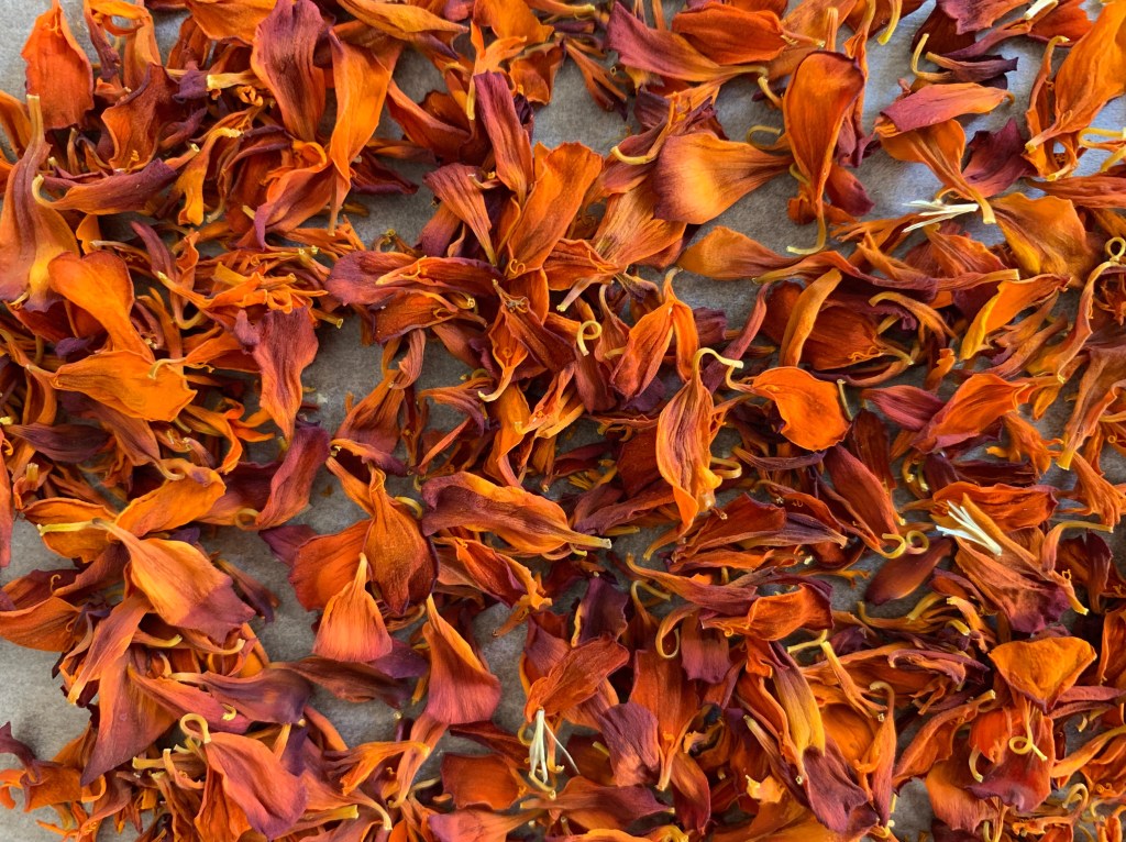 Riippuen ohjeesta kukkia ohjeistetaan hetki lakastuttamaan ennen käyttämistä sokerissa. Käytin kuitenkin suoraan tuoreet kukat – uskoisin että aromit siirtyvät paremmin sokeriin kukkien sisältämän veden siirtyessä sokeriin. Ainoa haittapuoli tässä on se, että sokerista tulee hieman kokkareista.