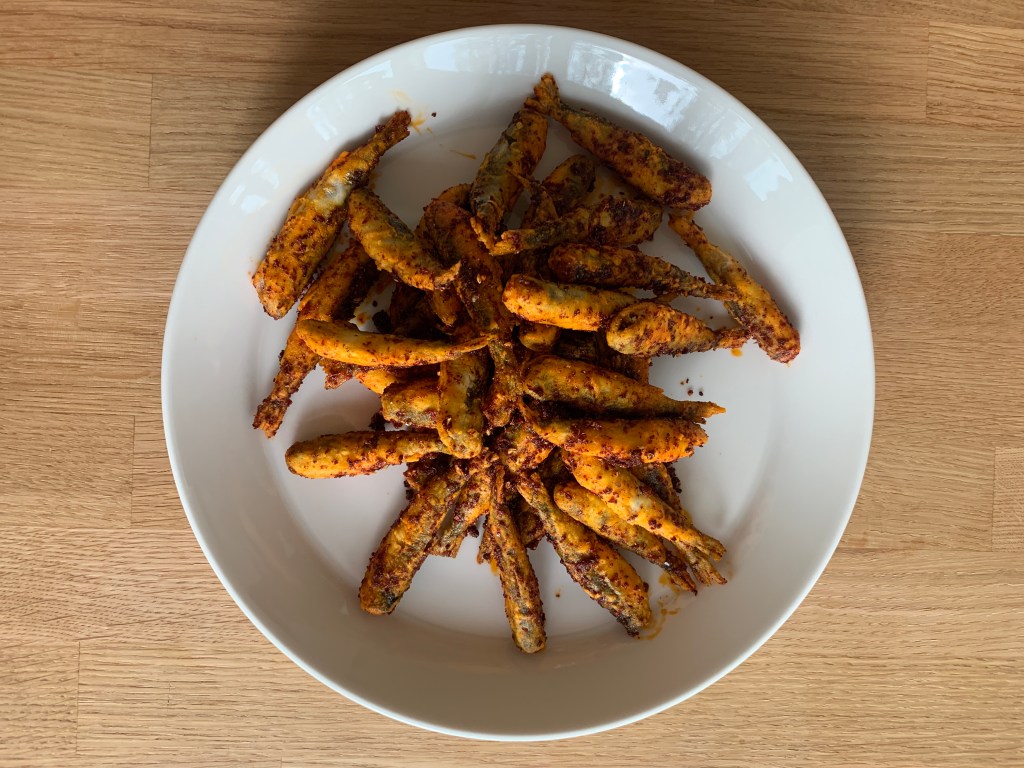 Fuchsia Dunlop kirjoittaa The Food of Sichuan-kirjassaan má là zi yū -ruokalajista, 麻辣子鱼, jossa pikku kalaset marinoidaan, friteerataan ja kuorrutetaan puuduttavan tulisella chiliöljyllä. Tämä reseptihän sopii hyvin myös muikuille!