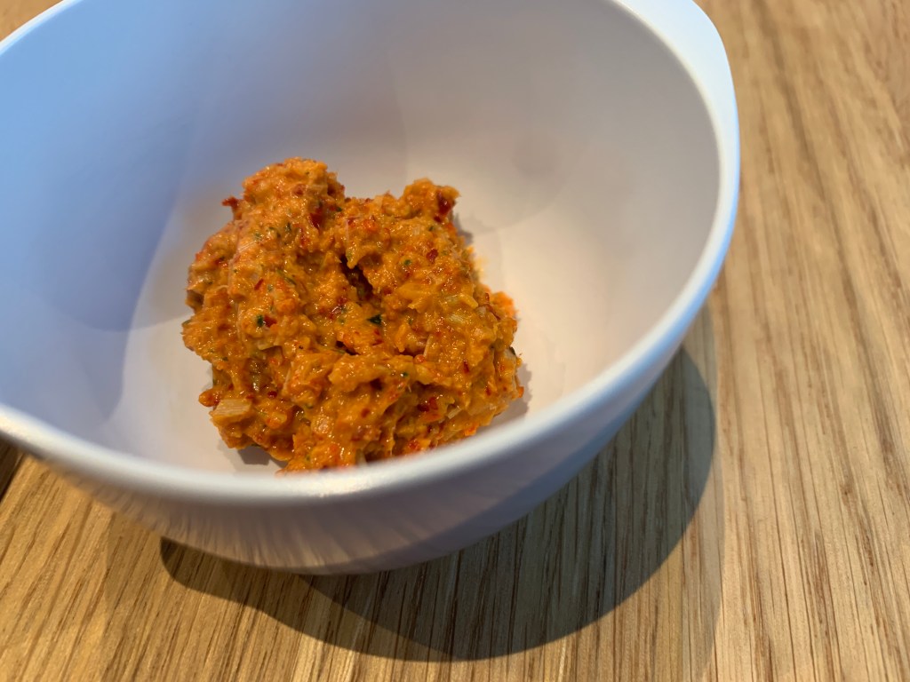 Mikäli käytät, lisää tahnaan katkaraputahna ja sekoita koko massa tasaiseksi.