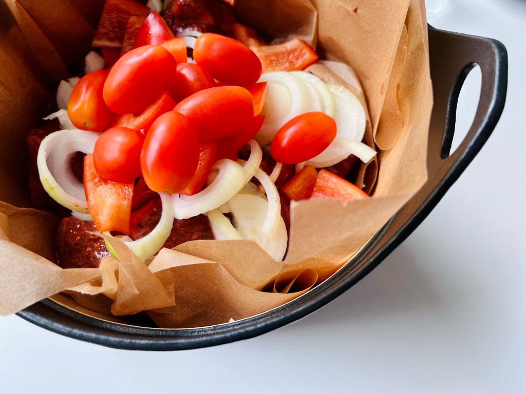 Leikkaa porsas sopiviksi paloiksi paistamista varten. Siirrä ne sopivaan astiaan maustumista varten. Kaada sitten niiden päälle mehu ja anna maustua noin vuorokauden ajan.
